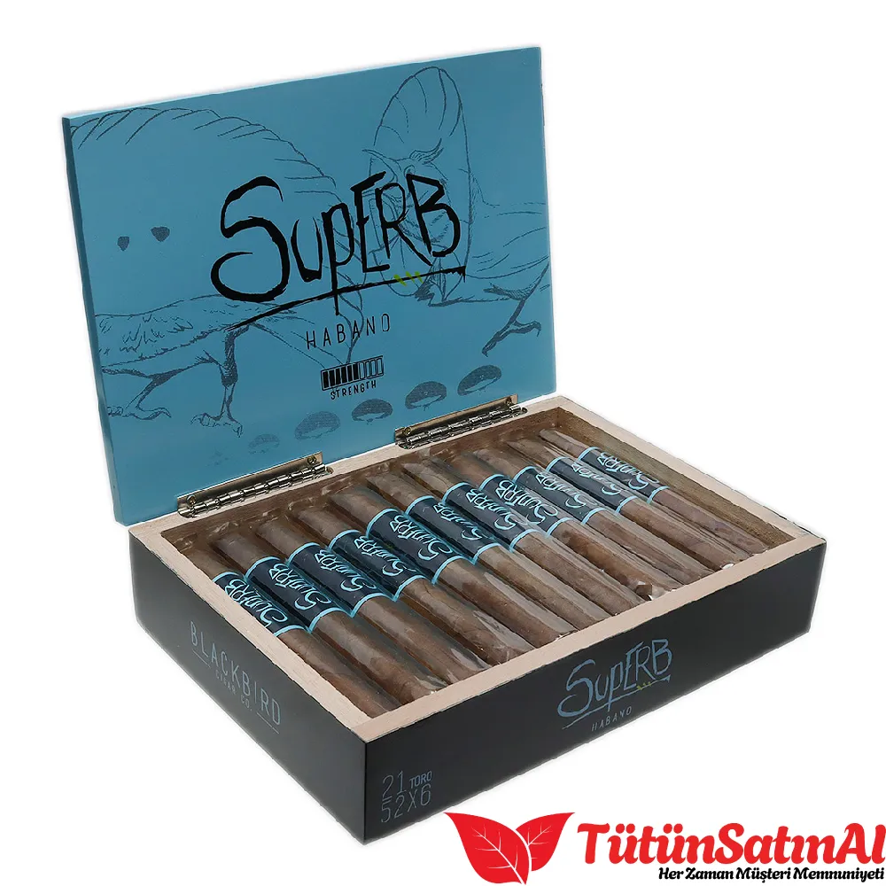 Blackbird Cigar Co.’nun 2024’te piyasaya sürdüğü en iddialı core line serilerinden biri: Blackbird Superb Habano. “Paradise kuşu”ndan (Superb Bird-of-Paradise) esinlenerek adlandırılan bu puro, markanın Dominik Cumhuriyeti’ndeki kendi fabrikasında (Blackbird Dominicana Cigar Factory) üretilen ilk blend ve core serilerinde ilk kez Habano wrapper kullanan model. Jonas Santana ve ekibinin aylarca test ettiği gizemli bir karışım; undisclosed binder ve filler ile sürpriz dolu. Toro boyu (6 x 52), 21’li ahşap kutularda paketleniyor.