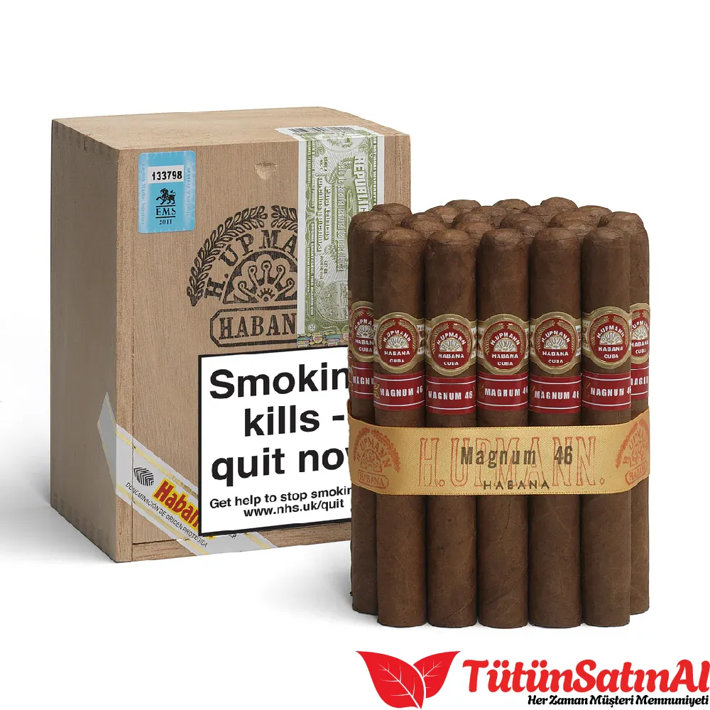 H. Upmann Magnum 46, Küba’da “Tripa Larga, Totalmente a Mano” (Uzun Dolgu, Tamamen El Yapımı) tekniğiyle üretilmiştir. Üstün işçiliğin yanı sıra, puro geleneksel H. Upmann bandına ek olarak, kırmızı ve altın renkli özel bir Magnum bandı taşır. Bu ikinci bant, Magnum serisinin ayrıcalıklı statüsünü vurgular. Magnum 46, markanın en güvenilir ve popüler purolarından biri olarak, her puro severin humidorunda bulunması gereken bir klasiktir.