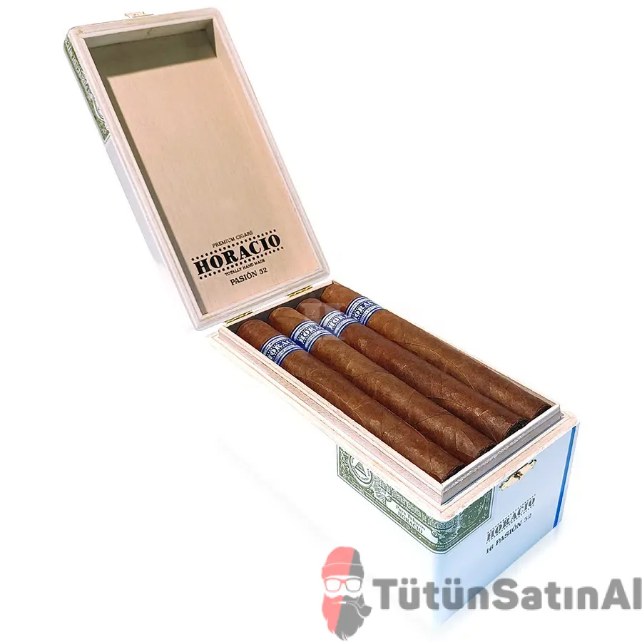 Horacio Pasión 52 Puro, adını aldığı 52 ring gauge (çap) ölçüsüyle dikkat çeker. Yaklaşık 6 inçlik uzunluğu ile tatmin edici bir içim süresi sunar. Kalın yapısı sayesinde duman hacmi daha dolgun ve aromalar daha belirgindir. Sargı yaprağı pürüzsüz, hafif yağlı dokusuyla hem görsel hem de dokunsal açıdan kalite hissi verir. Çekimi kolay, yanışı dengelidir. El yapımı olması sayesinde her bir puro, standartları yüksek bir üretim sürecinden geçer. Horacio markasının karakteristik özelliklerini barındıran bu model, teknik yapısıyla da kullanıcıdan tam not alır.