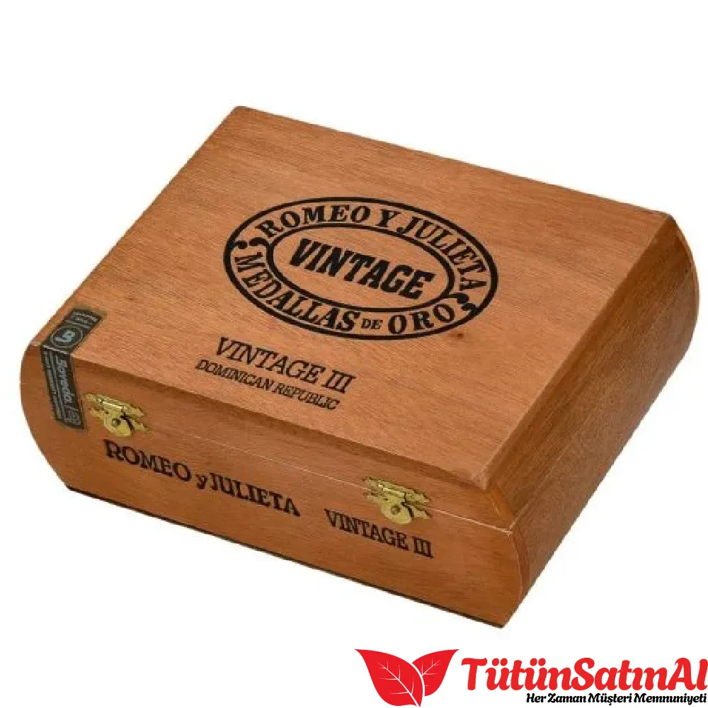 Romeo y Julieta Vintage III, ünlü Romeo y Julieta markasının Altadis USA tarafından Dominik Cumhuriyeti’nde üretilen premium el yapımı bir purosudur. 1993’teki “Puro Patlaması” döneminde tanıtılan bu seri, markanın klasik Küba kökenlerine saygı duruşu niteliğindedir ve modern, erişilebilir bir içim sunar. İnce yapısı, kremsi profili ve dengeli tatlarıyla hem yeni başlayanlar hem de deneyimli içiciler için vazgeçilmez bir seçenek haline gelmiştir. “III”, bu serinin özel vitola (boyut/şekil) adını ifade eder: 5 inç uzunluğunda ve 50 ring gauge’lik bir Robusto.