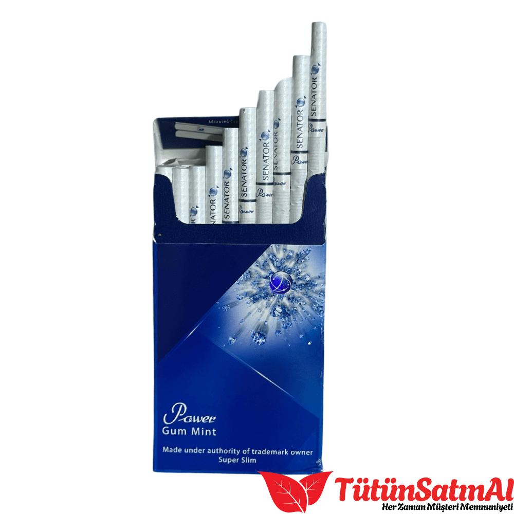 Senator markası, Avrupa menşeli tütün ürünleriyle bilinir. Power Gum Mint modeli ise bu markanın en çok tercih edilen mentollü sigaralarından biridir. Paket tasarımı modern çizgiler taşırken, içim sırasında verdiği tatlı mentol etkisiyle gün boyu tazelik sunar.